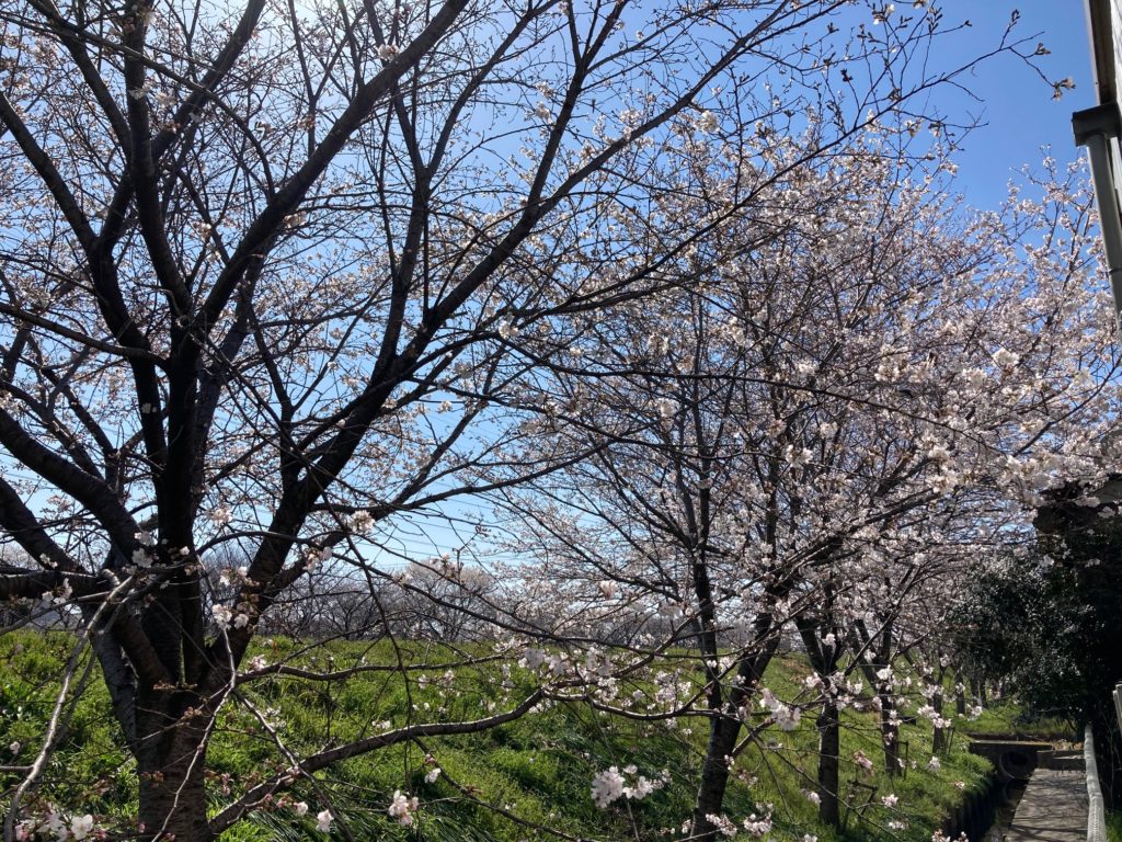 第一工場の裏手が五六川という川が流れているのですが、その土手に植わっている桜が咲き始めました
